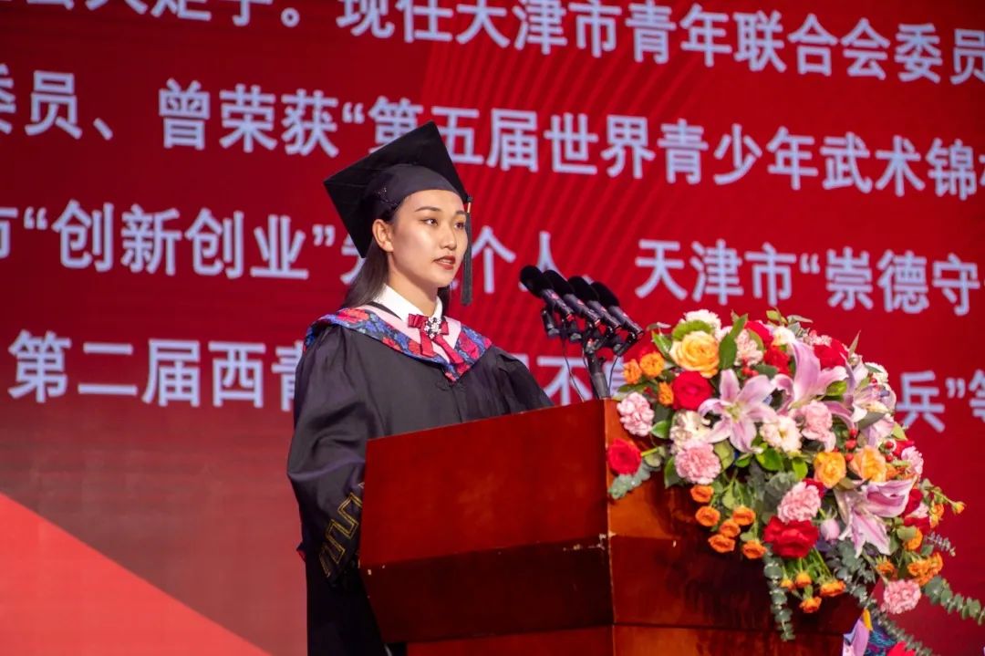 本科毕业生代表李雪娜发言,号召全体毕业生发扬beat365精神,把理想播种在广阔的时代沃土,奋力书写赓续百年伟业的青春华章。