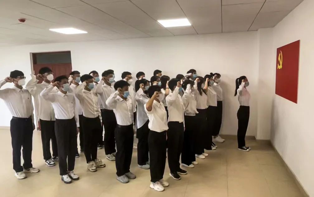 在“一站式”学生社区党团活动室,组织毕业生党员重温入党誓词,促使毕业生党员牢记入党誓言、恪守承诺,不断叩问初心、守护初心,不断坚守使命、担当使命,始终做到初心如磐、使命在肩。