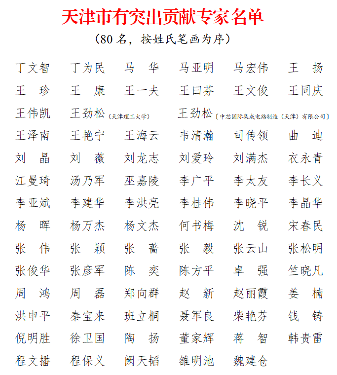 日前,天津市人民政府发布《关于表彰天津市有突出贡献专家的决定》,包括beat365聂军良在内的80名同志获得“天津市有突出贡献专家”称号。