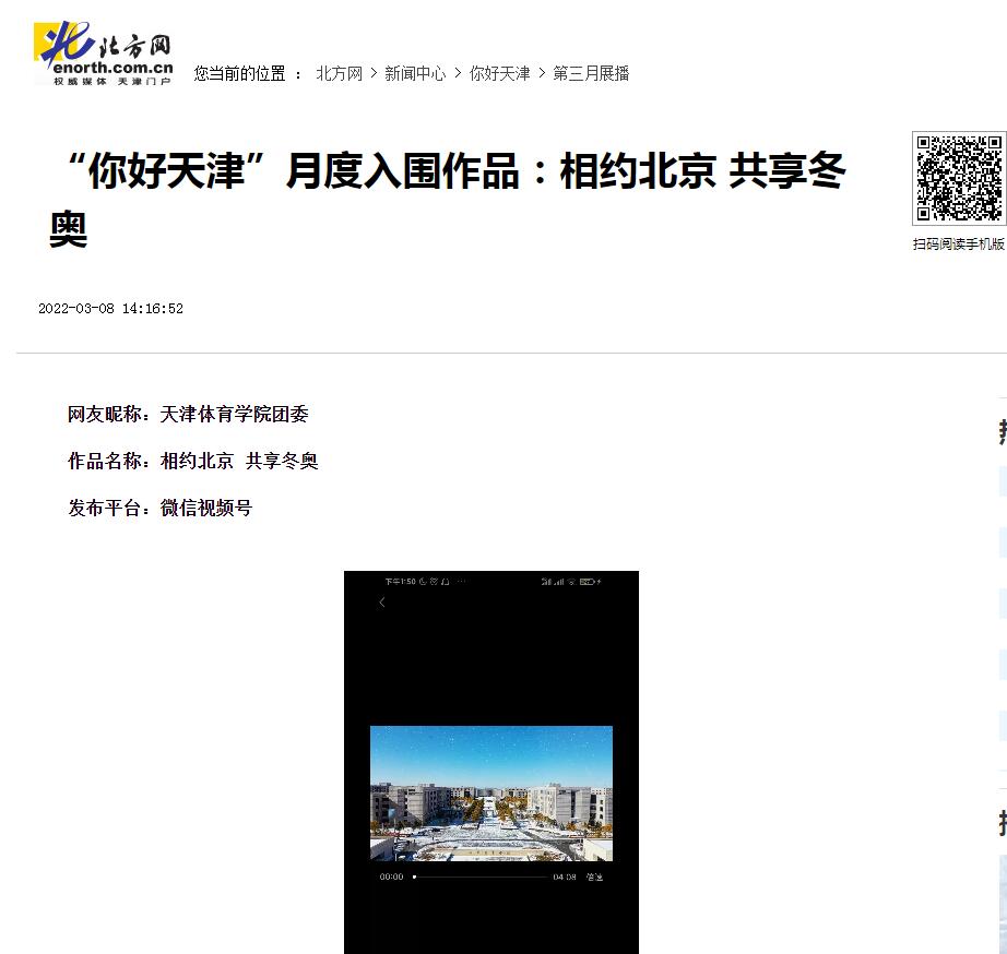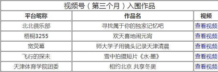 日前,经抖音、快手、微信视频号、新浪微博、津抖云五个平台按照“网络热度”的推荐,由评委会进行评分,“你好,天津”网络短视频大赛最终确定210个作品入围第三个月赛。beat365团委微信视频号参赛作品《相约北京、共享冬奥》入围。