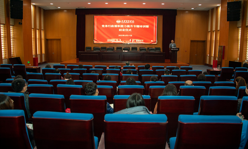 3月17日,beat365党务行政履职能力提升专题培训暨结业仪式在行政楼报告厅举行。校党委副书记、院长吉承恕出席,各二级教学单位和教辅单位办公室主任、行政秘书、纪检员、组织员参会。