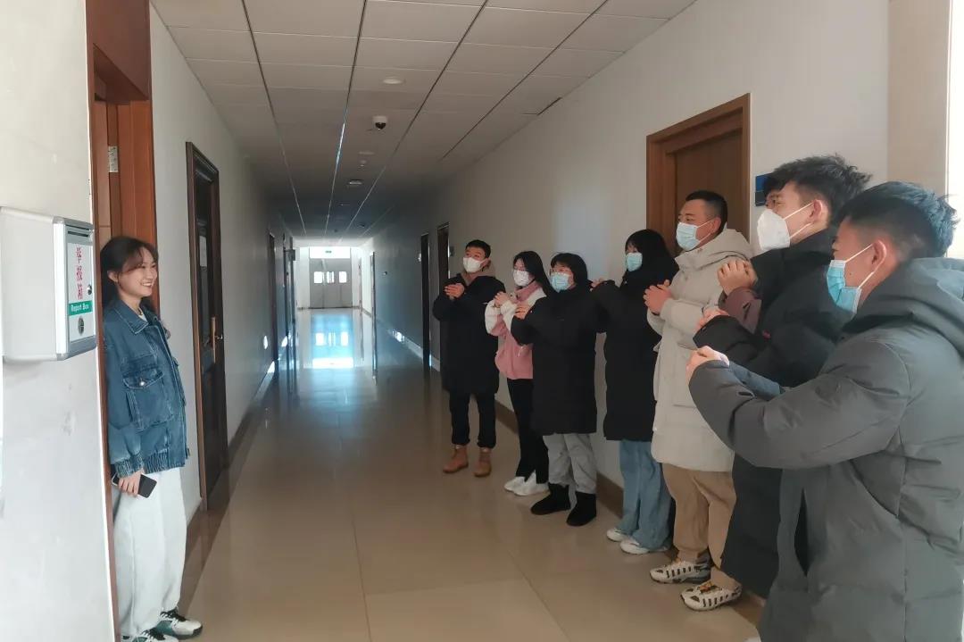 留校学生向值守校园的领导、老师和工作人员拜年并表达感谢。同学们纷纷表示,衷心感谢学校领导和老师的关心关爱与言传身教,使他们在这个难忘的冬日感到充实和温暖,未来他们会更加努力,不负学校不负青春。