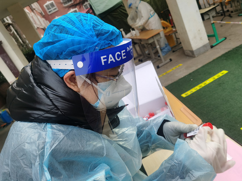 徐梅梅,中共党员,财务与资产管理处干部,参加静海区华康街道湖岸栖庭社区核酸检测志愿服务,参与完成现场秩序维护,确保排队居民保持间距、提前准备证件、筛查完毕后及时离开检测区域。