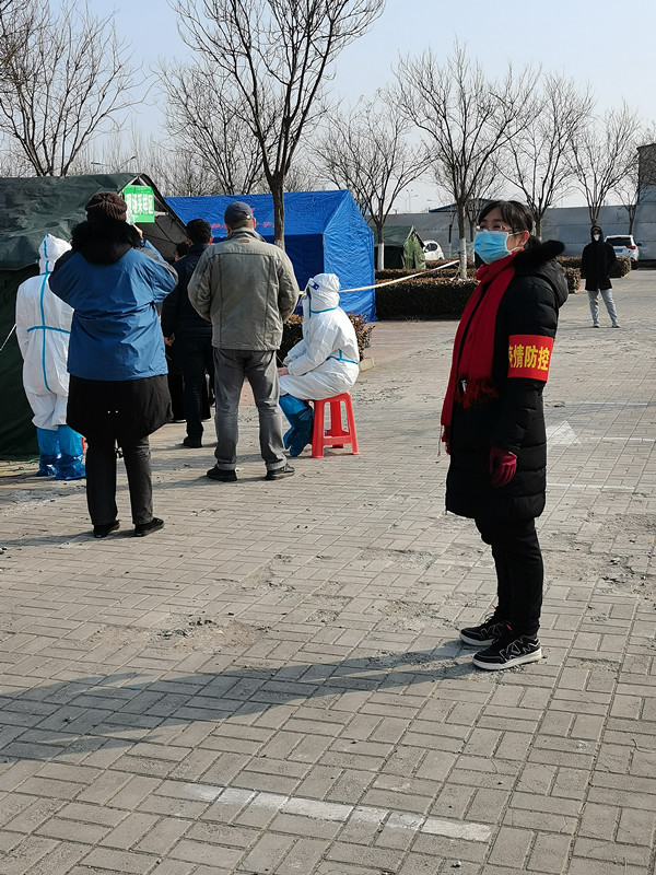 袁广丽,中共党员,财务与资产管理处处长,主动到社区报到,参加南开区王顶堤街道天拖西社区核酸筛查志愿服务,完成人员信息核对、身份信息采集,维持现场秩序等工作。