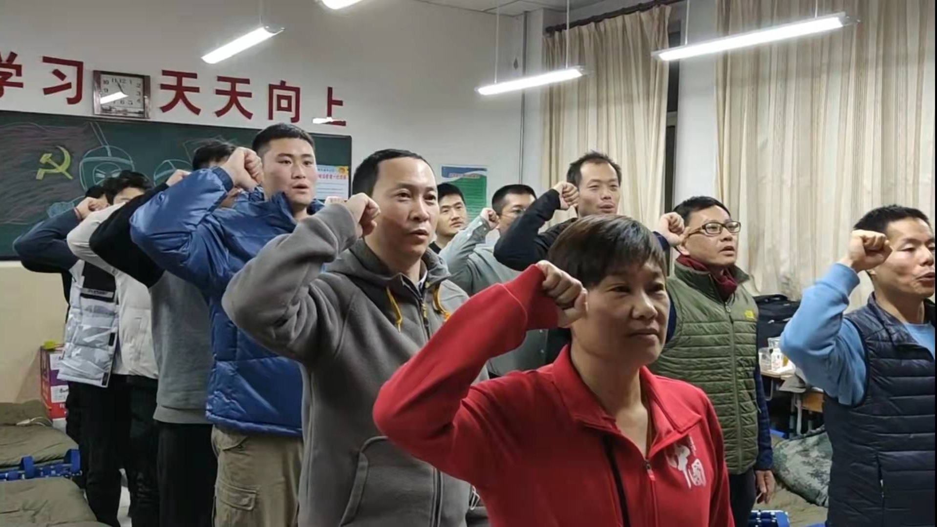 1月21日晚7点,突击队临时党支部召开全体党员大会。首先,支部书记刘锦瑶带领全体党员在党旗面前重温入党誓词。随后,刘锦瑶总结了突击队进入封控区三天来的工作情况,讨论了下一阶段工作安排。最后,全体党员进行集体学习。同志们纷纷表示有信心打好这场奥密克戎的阻击战,让全市人民过一个祥和的春节。突击队员邢进和魏诗瑶向临时党支部递交了入党申请书。