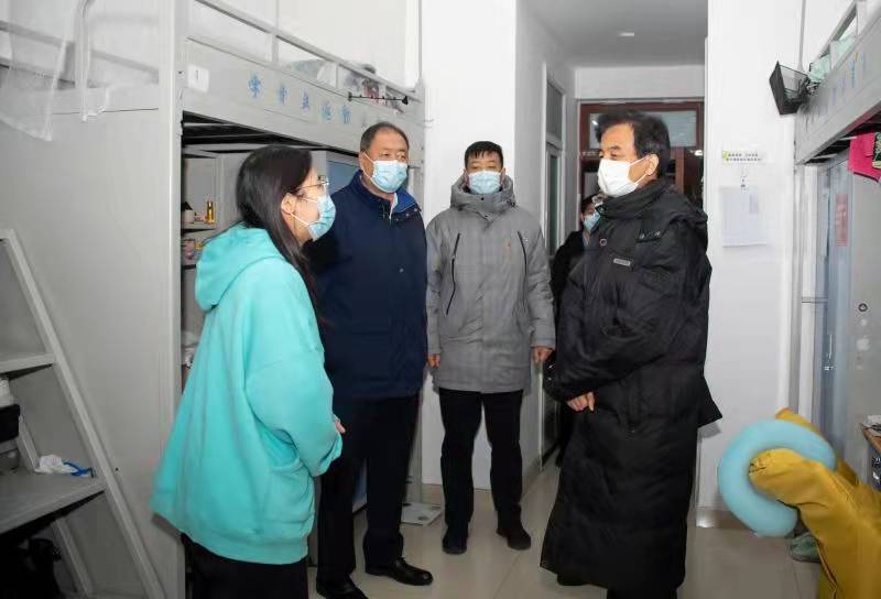 1月12日,教育部体育卫生与艺术教育司一级巡视员郝风林一行来beat365督导检查疫情防控工作,天津市教委副主任郝奎刚,党委副书记、院长吉承恕,副院长张欣、张卫国,市纪委监委派驻纪检监察组组长张洺涛陪同检查。