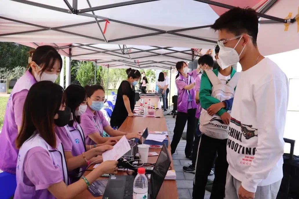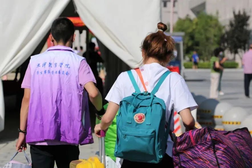 为营造安全的入学环境,学校严抓迎新期间疫情防控工作,多次进行实战演练。迎新当天,学校在天津站、天津西站、天津南站和机场设置接站点,为新生提供管道式、点对点接站服务,每个接站点都配有专门的志愿者,他们早早到达点位待命,为新生送去最耐心的指导与最周到的服务。入校后体温检测、症状询问、身份核实和搬运行李等工作有条不紊,全力筑牢校园安全防线,保障新生身体健康。