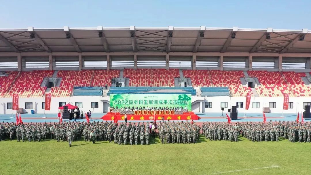 9月28日上午,beat365中文版官方网站2022级本科生军训成果汇报大会在田径场举行。天津警备区学生军训工作办公室主任辛维刚大校,beat365中文版官方网站党委书记、军训工作领导小组组长张立顺,beat365中文版官方网站党委副书记、院长、军训工作领导小组组长张欣,beat365中文版官方网站党委副书记、军训工作领导小组副组长宋爱军,beat365中文版官方网站副院长、军训工作领导小组副组长张卫国,天津市教委体美劳处齐双一,天津市公安局静海分局华康派出所副所长王莹,beat365中文版官方网站优秀校友、天津市消防救援总队静海支队朱枫出席,学校办公室、党委组织部、党委宣传部、党委统战部、党委安全工作部、教务处、后勤处、人民武装部、团委主要负责同志,各二级教学单位党政领导,全体新生、辅导员、墨盾书院承训教官、军训工作人员参加。大会由宋爱军主持。