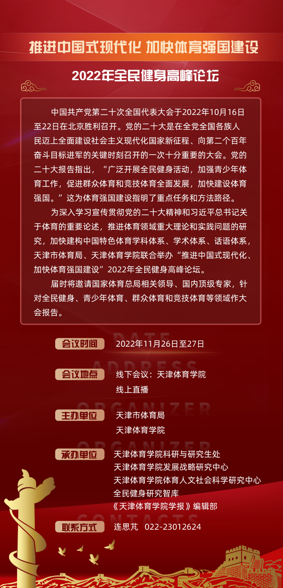 会议预告 |“推进中国式现代化 加快体育强国建设”2022年全民健身高峰论坛