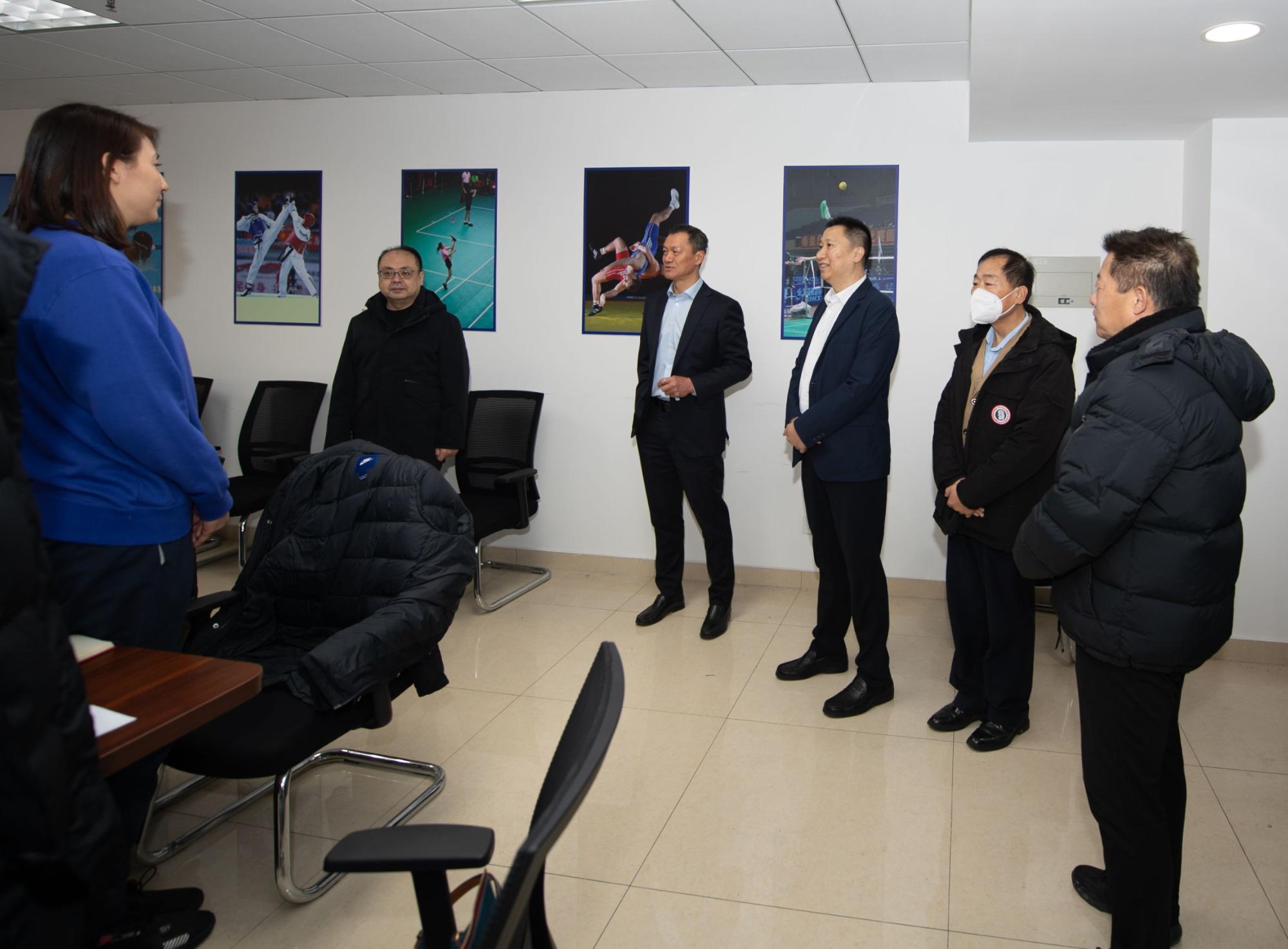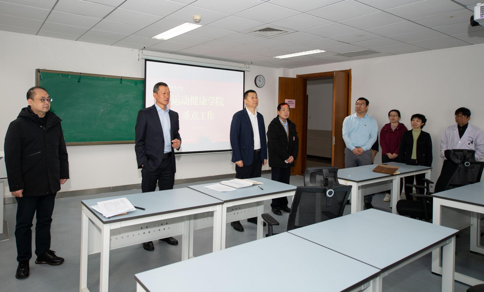 校领导一行先后走访了行政楼、特殊教育教学实训楼、社会体育实训楼、排球馆、实验楼、图书馆、大学生活动中心、教学楼、羽毛球乒乓球馆、武术馆、生活服务楼等区域,向开学返岗的教职工致以新学期的问候。