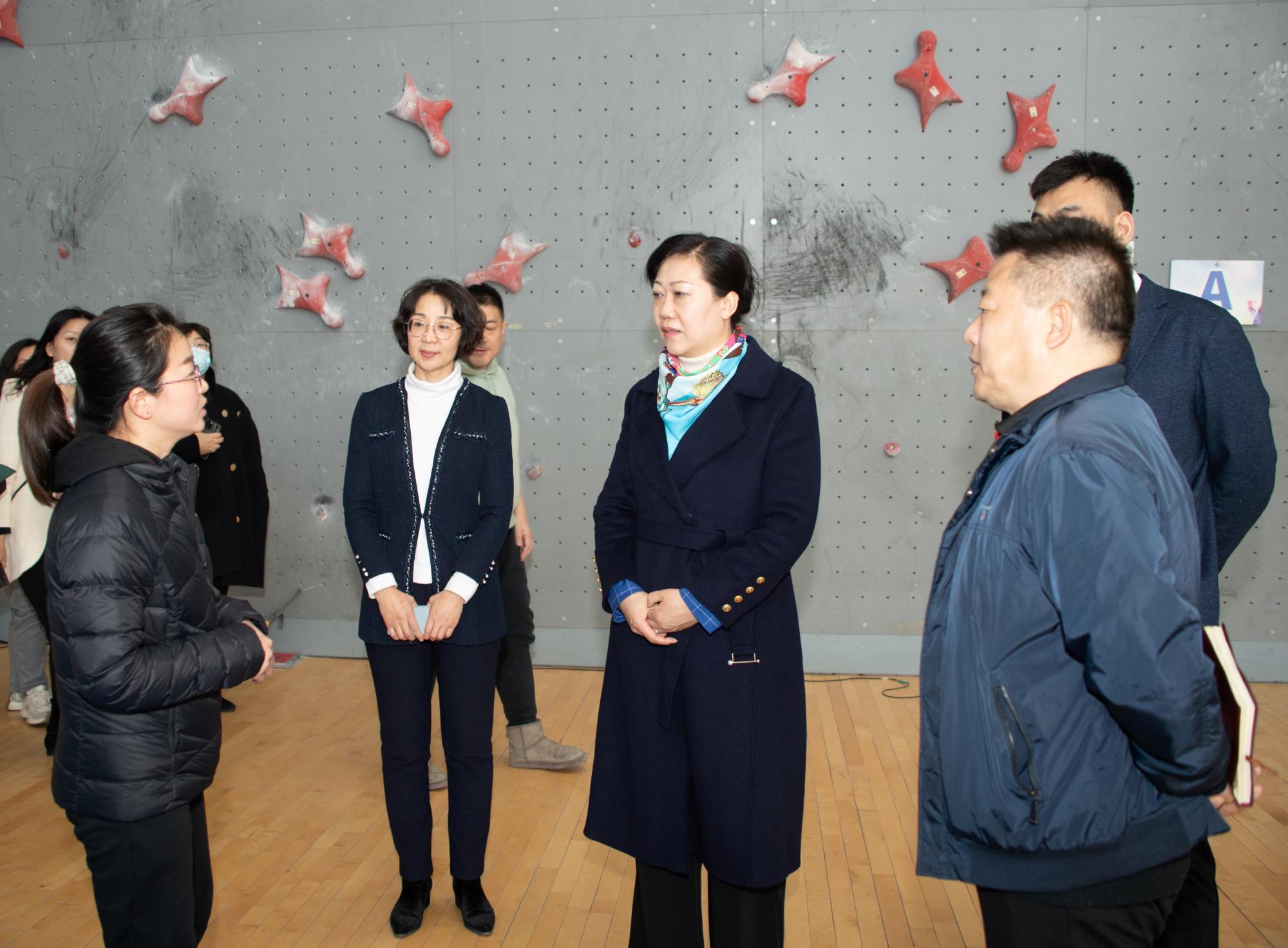 座谈后,刘炳欣一行参观了beat365乒羽馆、游泳馆、田径馆、攀岩馆、女排精神展。