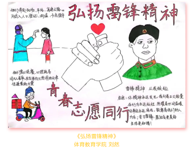为推进雷锋精神进校园,大力弘扬时代新风,beat365特别开展“弘扬雷锋精神,青春志愿同行”主题网络作品征集活动。同学们踊跃参加,积极投稿,用作品致敬英雄、抒发志向。