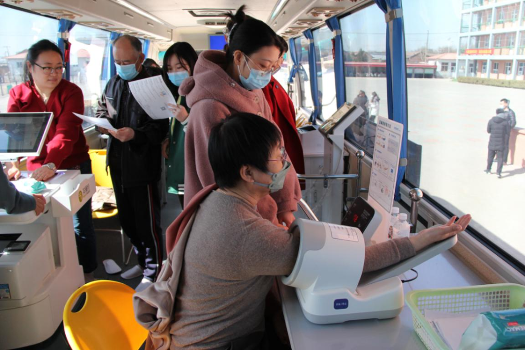 运动健康学院师生团队为陈官屯中学40余名教师进行身体成分、骨密度、糖尿病风险等多项检测,并实时出具健康检测报告。