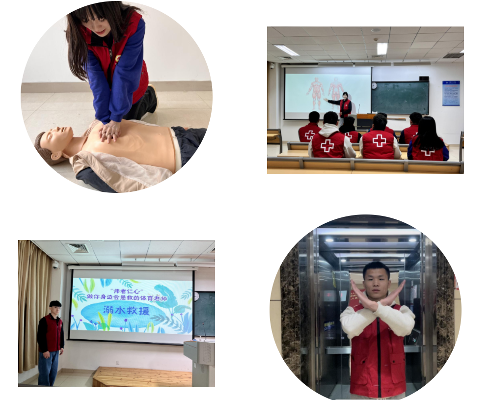 体育教育学院组织体育教育专业20余名学生志愿者进行相关应急救护知识培训,并赴中小学进行展示。