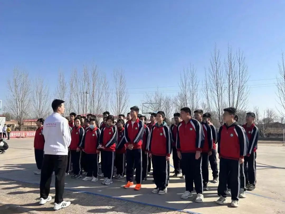 运动健康学院选派师生为陈官屯中学120余名毕业学生中考体育项目提供训练指导。