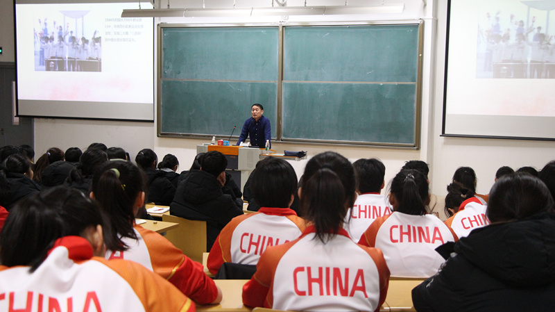 2月23日晚,马克思主义学院院长高永强以“弘扬女排精神,激扬奋斗青春”为主题,讲授了一堂生动的思政课。高永强结合时代背景,论述了女排精神何以振奋一个时代。他谈到,在改革开放初期,中国女排横扫千军、所向披靡,勇夺五连冠。其勇于拼搏、自强自信的精神成为整个民族锐意进取、昂首前进的精神动力。他教导年轻一代的运动员们,要深入理解女排国家队原主教练郎平的话,“女排精神不是赢得冠军,而是有时候知道不会赢,也竭尽全力”,立足中国特色社会主义新时代,坚定百折不挠的进取意识,为中华民族伟大复兴、为中国排球事业发展贡献力量。