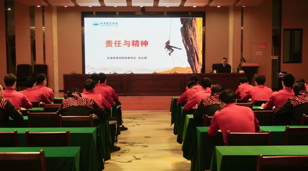 为深入贯彻落实党的二十大精神,充分发挥高等体育院校在运动心理调适、运动诊断与监控、运动康复与营养等科技服务保障和思想政治教育方面的优势,3月4日-5日,校党委书记张立顺赴福建漳州、宁波北仑体育训练基地,为国家男、女排队开展以“责任与精神”为主题的爱国主义和思想政治教育培训。