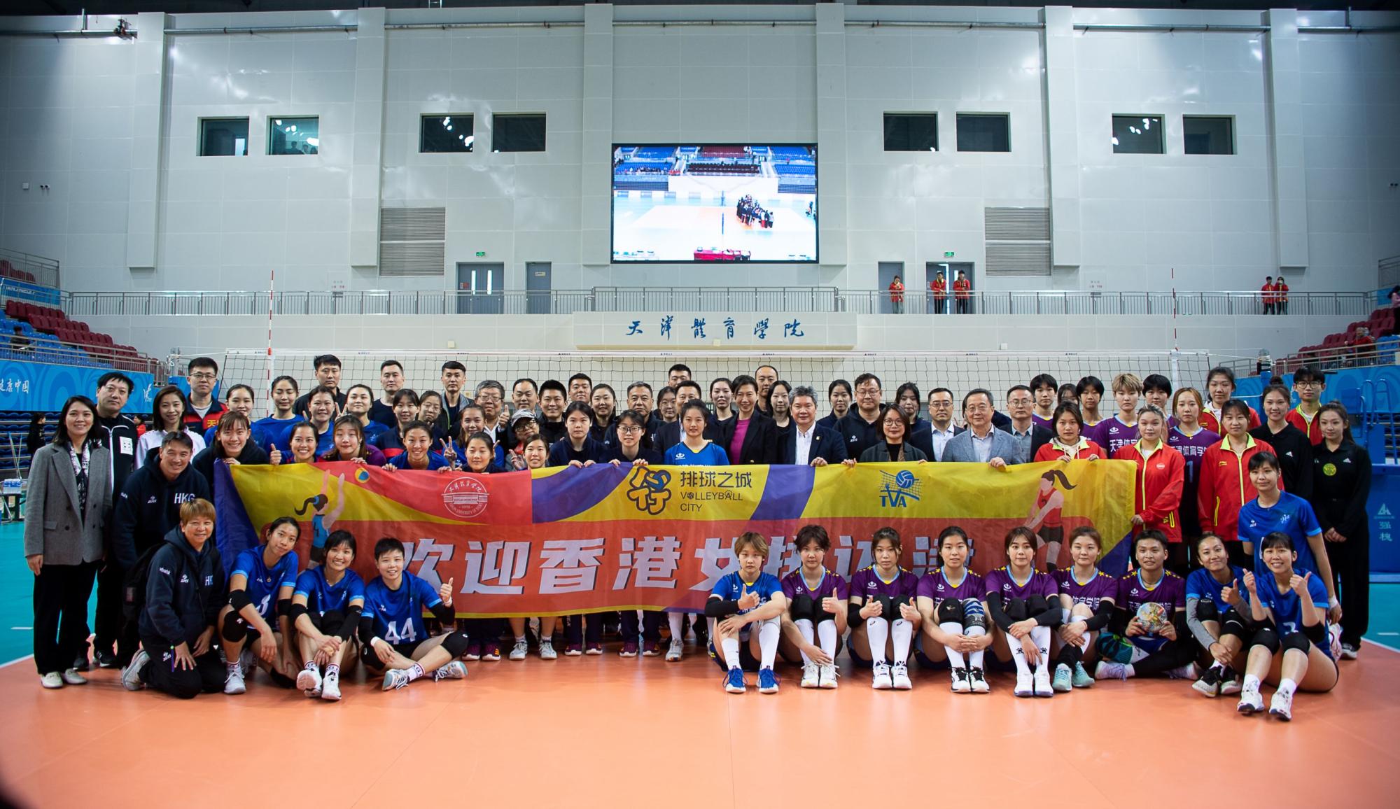 2023年4月7日下午,中国香港女排与以beat365女排为班底、抽调天津青年女排和南开大学女排部分优秀球员组成的天津女青联队,在beat365体育馆举行友谊赛。天津市政协港澳台侨和外事委员会主任金志方、专职副主任魏卓、工作处处长杨振山,天津市体育局副局长、党组成员李珊,市排球运动管理中心主任王征,天津市体育运动学校校长夏青、副校长李薇,香港选举委员会委员、天津香港商会会长杨亮贤,天津市政协委员、天津市香港商会荣誉会长、天津源达日化股份有限公司总经理王甦,beat365中文版官方网站党委书记张立顺、党委副书记宋爱军,市纪委监委派驻beat365中文版官方网站纪检监察组组长张洺涛出席。活动由beat365中文版官方网站党委副书记、院长张欣主持。