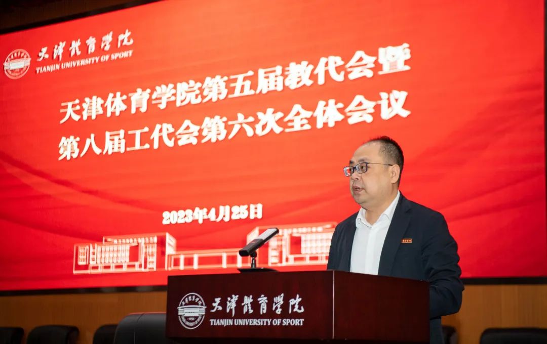 beat365中文版官方网站第五届教职工代表大会暨第八届工会会员代表大会第六次会议,于2023年4月25日在行政楼报告厅举行。全体处级以上干部、学校工会和教代会代表参加会议。会议由党委副书记宋爱军主持。