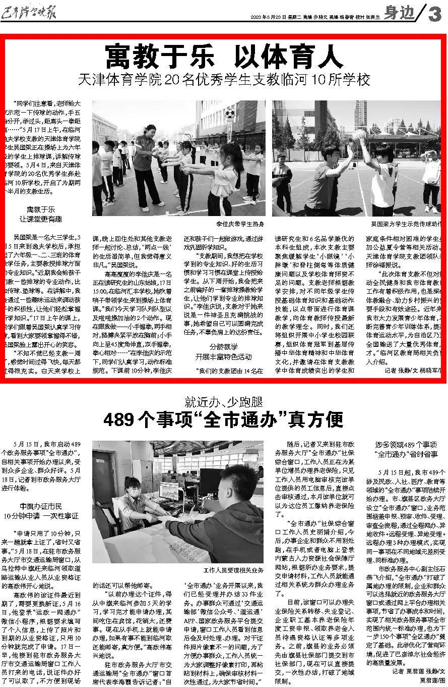 《巴彦淖尔晚报》5月23日第3版