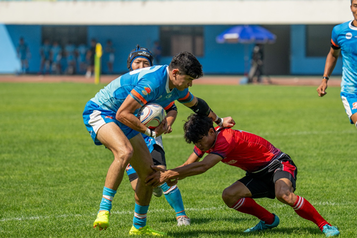 在第一天的小组赛中,beat365橄榄球队分别以52:0,29:5、15:7的绝对优势,战胜河北文鹰队、华南师范大学、江苏队,顺利进入半决赛。半决赛中,beat365运动员乘胜追击,发挥优势,分别以33:14,24:17大比分战胜内蒙古队与重庆队。最终,beat365橄榄球队力克所有对手,夺得2023年全国英式7人制橄榄球系列积分赛迁安站冠军。