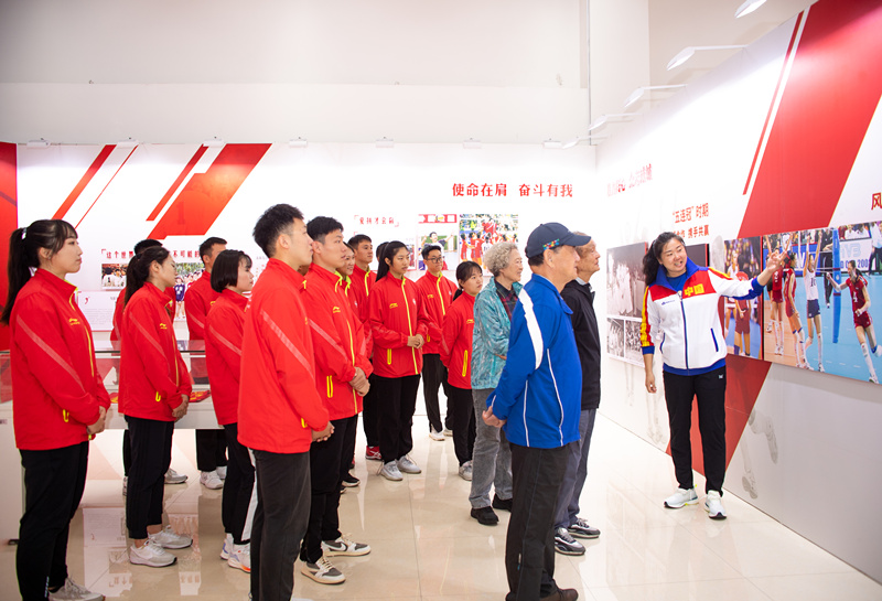 在2004年奥运会女排冠军张娜的带领下,退休教师们和研究生代表共同参观了“国家荣誉——中国女排精神展”。张娜生动讲解了中国女排勇夺十次世界冠军的历程和拼搏之路,通过观看影像、图文展览和馆内实物,大家直观感受中国女排一路走来的艰辛,从“没什么不可能”到“爱拼才会赢”再到“没有最好的个人,只有最好的团队”的理念,深刻领悟了“祖国至上、团结协作、顽强拼搏、永不言败”的女排精神。展馆中复刻的“竹棚”训练馆也勾起了老教师们的回忆,纷纷讲起上世纪80年代中国女排背后的科研故事,beat365排球教研室成员在缺乏电子设备的条件下,依靠人工手写资料、反复看录像等方式,分析研究排球技战术,为中国女排训练、比赛提供了理论支撑。