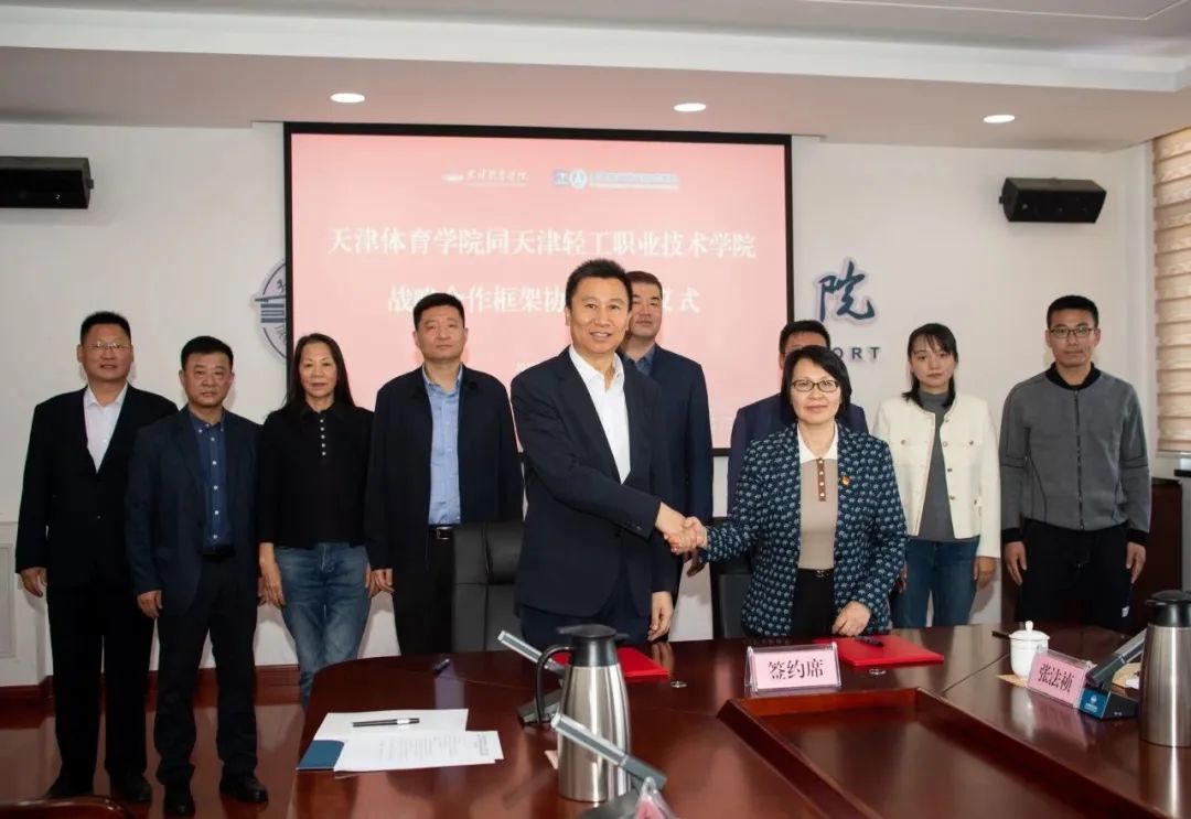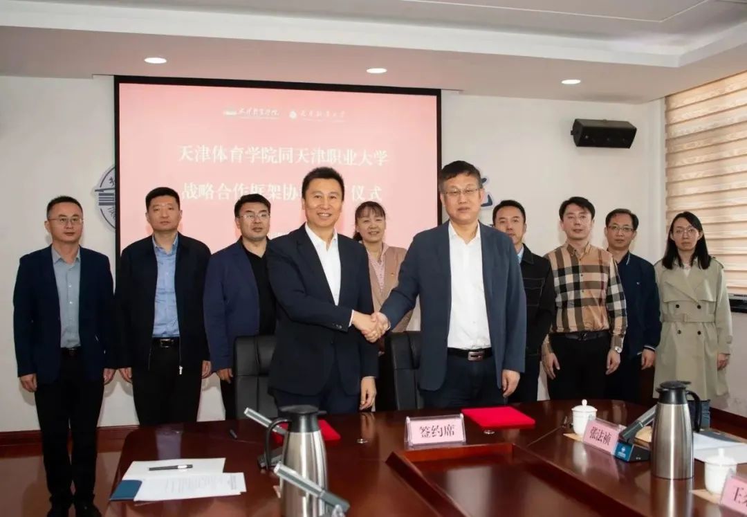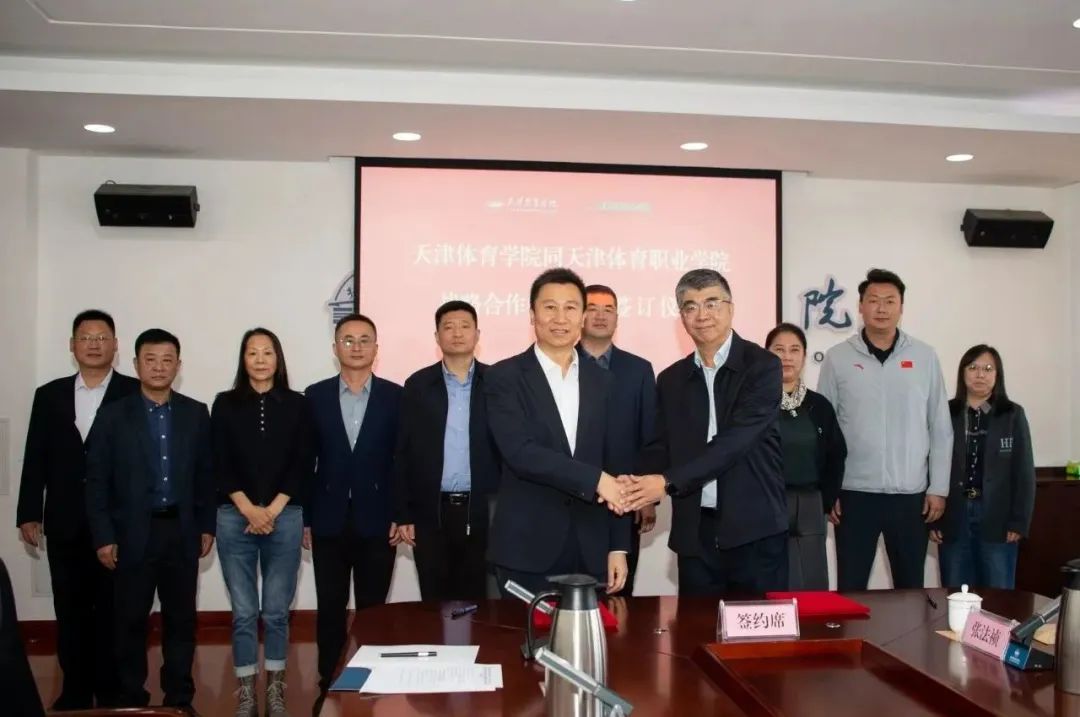 2023年10月27日,beat365中文版官方网站同天津职业大学、天津轻工职业技术学院、天津体育职业学院战略合作框架协议签订仪式在beat365举行。天津市教育委员会发展规划处副处长李清,天津市体育局宣教法规处副处长王笛,天津职业大学党委副书记、校长郑清春,天津轻工职业技术学院党委副书记、院长李云梅,天津体育职业学院党委副书记、院长王伟,beat365中文版官方网站党委副书记、院长张欣,以及四所院校的相关职能处室领导出席了会议。会议由beat365中文版官方网站副院长杨智主持。