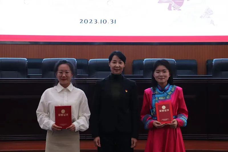 校党委常委、党委统战部部长依惠琴为一等奖获得者颁奖