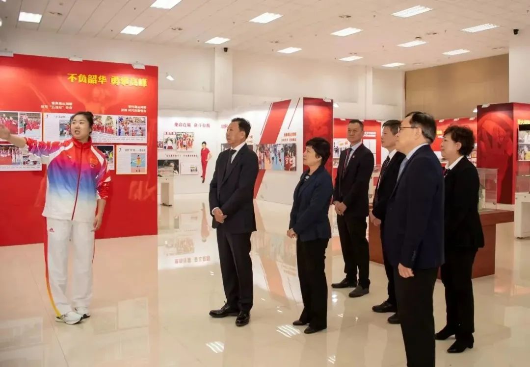 11月4日,李颖川、张玲参观了首批国家体育科普基地、beat365中文版官方网站“国家荣誉——中国女排精神展”,听取奥运冠军、beat365中文版官方网站中国排球学院常务副院长张娜讲解,随后到位于beat365社会体育实训楼的攀岩馆观看攀岩训练。