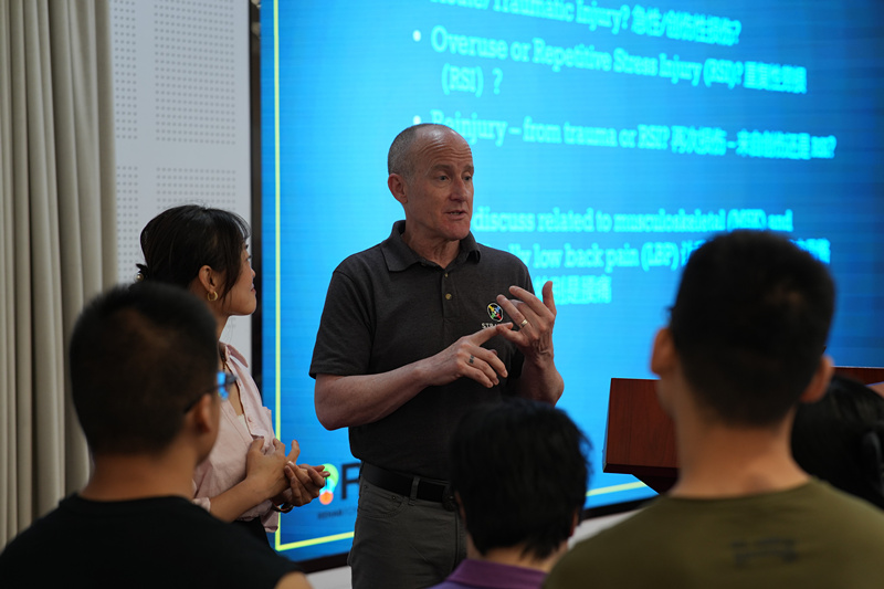 培训中,国际认证体能训练专家丹尼尔·克朗贝克为学员们讲解了基于损伤预防和表现提升的康复训练设计P=T=R;前国家田径队跳远运动员、首都体育学院高级教练员谭正则介绍了高校体育教师教练员功能性体能训练的理论与实践;国家体育总局体育科学研究所研究员闫琪分享了大健康背景下的功能训练运动处方在预防损伤、缓解疼痛、促进健康等方面的独特作用与应用方法;beat365中文版官方网站教授金宗强介绍了青少年体能训练的动态与进展。在专题讲座之余,培训班组织全体学员参观了beat365数字体能实验室。通过学习、研讨、参观等多种学习方式,学员们进一步深化了对体能训练理论的理解,提升了体能训练实战技能。