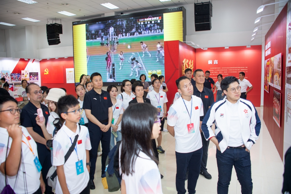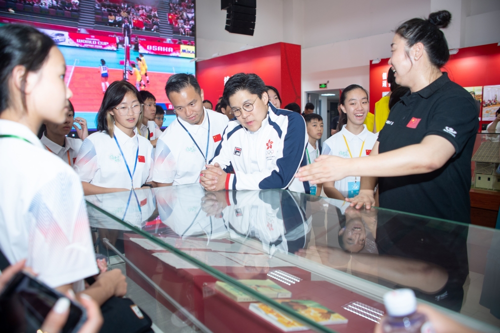 霍启刚带领香港青少年天津交流团在中国排球学院参观了“国家荣誉——中国女排精神展”,聆听中国排球学院常务副院长张娜的讲解,了解了中国女排勇夺十次世界冠军的历程和拼搏之路。青少年团员们看得津津有味,与讲解者积极互动,不时拿出手机拍照留念。随后,交流团成员们来到排球馆,观摩了2024年全国排球后备人才集训,并与集训队员和beat365学生进行了交流。