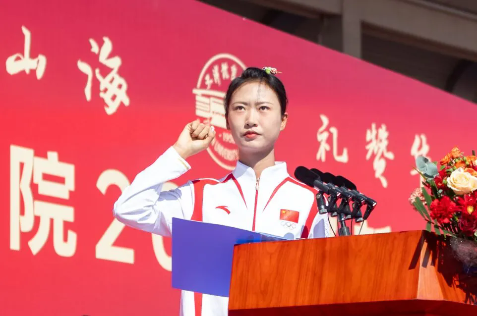 新生代表李红分享了她作为中国女子曲棍球队副队长和队友在巴黎奥运会征战赛场的动人故事,鼓励“新beat365人”传承体育精神、普及全民体育,肩负起体育强国的责任与担当。