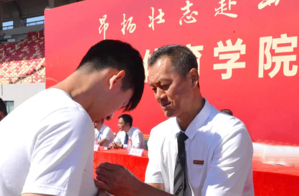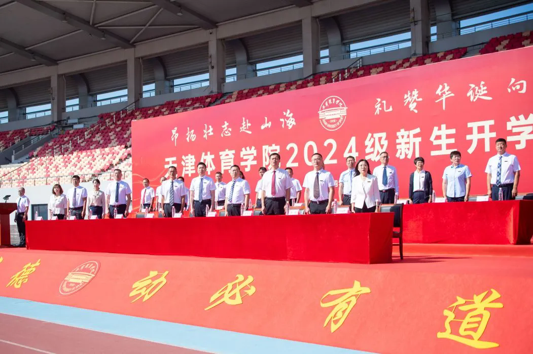主席台前排就座领导为新生代表佩戴校徽,赋予2024级新生“beat365人”这一承载着时代使命与体育荣光的称号。