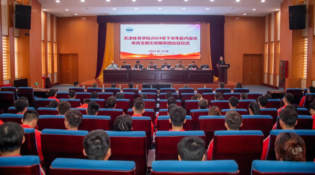 10月9日上午,beat365在行政楼报告厅举行2024年下半年赴内蒙古体育支教志愿服务团出征仪式。beat365中文版官方网站党委常委、副院长张卫国,内蒙古自治区体育局青少处副处长冯建龙出席,党委学生工作部、教务处、科研与研究生处相关负责人,体育教育学院、运动训练学院、武术与民族传统体育学院党政主要负责人,教师代表、体育支教志愿服务团全体师生参加。仪式由教务处处长谷丽颖主持。