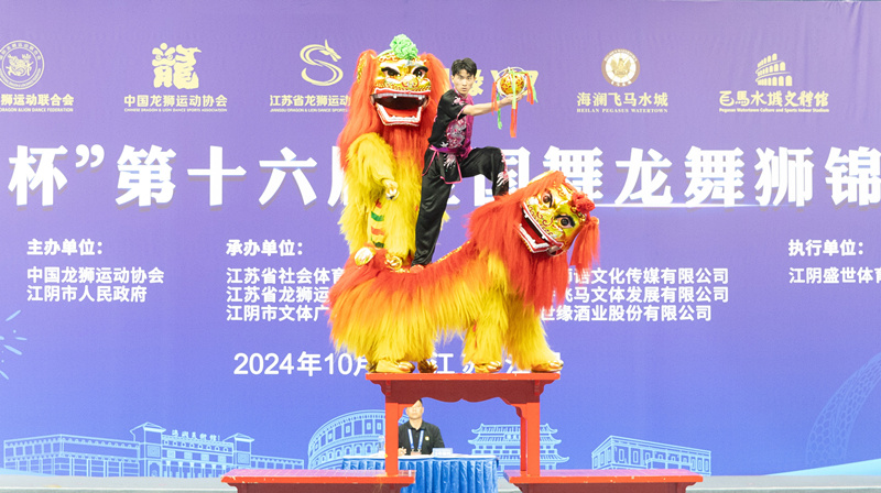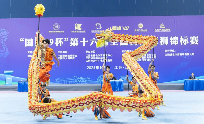 10月23日至26日,第十六届全国舞龙舞狮锦标赛在江苏省江阴市飞马水城文体馆隆重举行。本次赛事吸引了来自20余省、自治区、直辖市的百余支精英队伍,1900多名运动员参与。比赛共设男子组、女子组、混合组3个组别,舞龙、南狮、北狮、彩带龙、创意龙狮5个大项,共计18个小项。