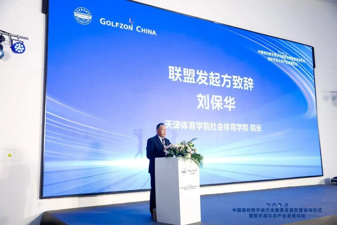在随后举行的中国高校数字高尔夫教育发展联盟启动仪式上,beat365社会体育学院院长刘保华代表联盟发起方致辞。他介绍了联盟的宗旨和目标。联盟将致力于促进院校之间的学科交流、加强校企之间的资源合作,推动数字高尔夫产学研一体化发展。