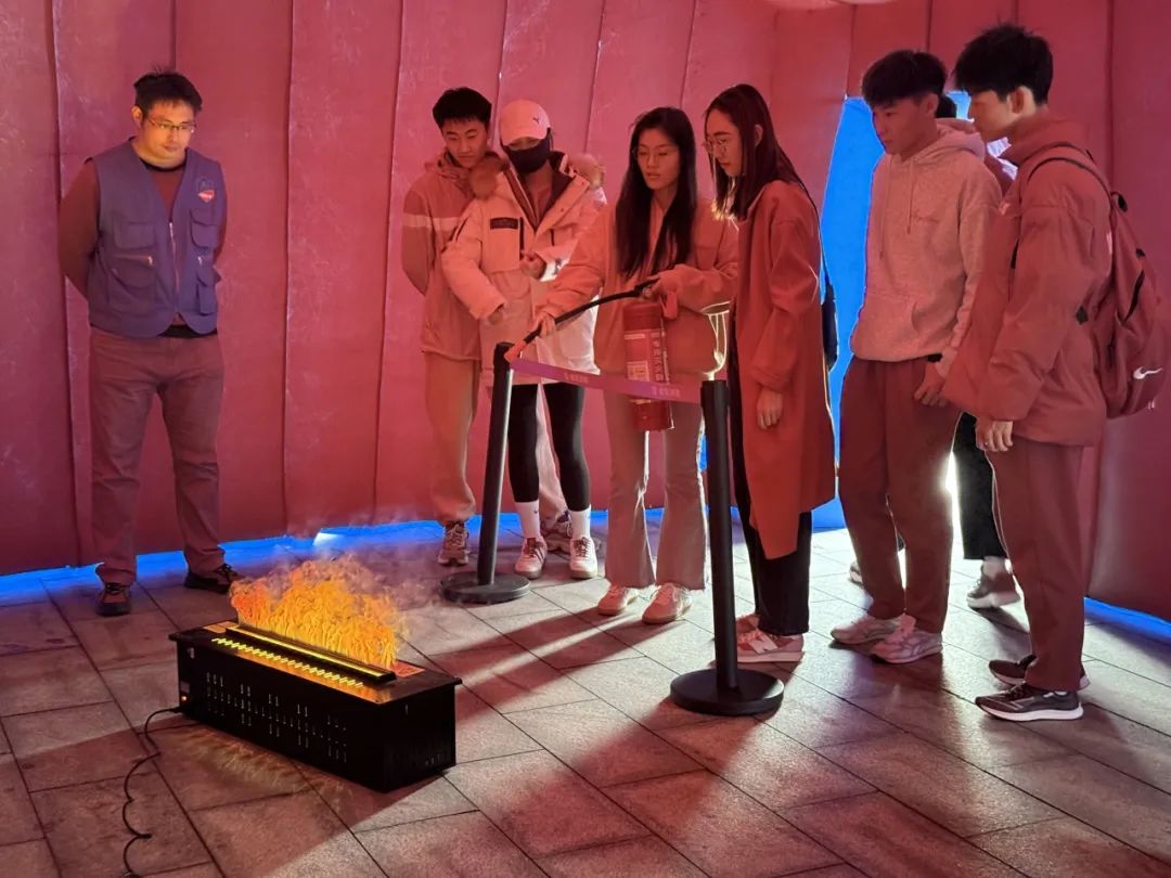 模拟消防舱体验环节,舱内电子模拟灭火器真实还原了灭火器的操作方法,帮助师生高效、快速掌握灭火器使用的方法和注意事项。疏散逃生舱最大程度模拟真实火场环境,参与人员沿应急疏散指示牌快速疏散逃生,提升了应急疏散逃生能力。