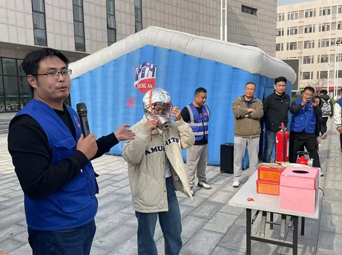 消防知识讲座环节,宣教员为师生员工讲解了消防常识、火灾报警、疏散逃生等知识,演示讲解了灭火器、灭火毯、消防水带、呼吸面罩等消防器材的使用方法,并邀请师生代表进行了实操演练。