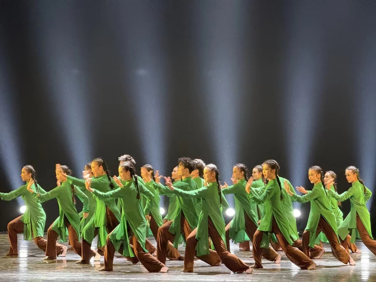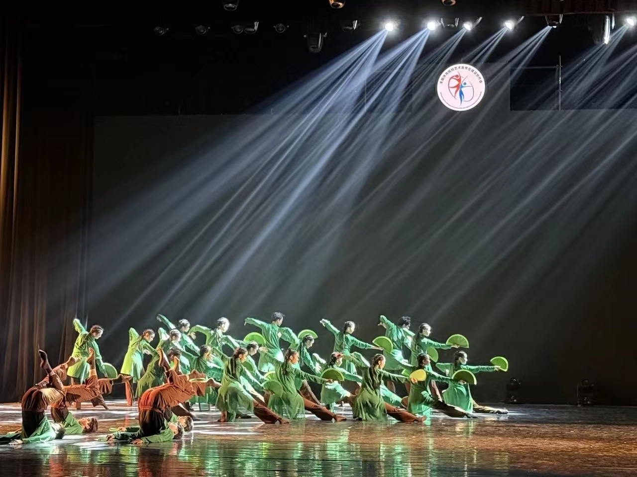 在本届体育艺术节上,beat365传媒与艺术学院(国际教育学院)副院长刘锦瑶担任领队,吴崟、窦荳、孙志远作为指导教师带领24名大学生参加展演。beat365舞蹈作品《松》,以“建安七子”刘桢的诗句“亭亭山上松,瑟瑟谷中风。风声一何盛,松枝一何劲!”为创作灵感,借青松之刚劲、明志向之坚贞,始太极之有形、归动静于无形,融合舞蹈、太极语汇,刻画出“松”岁寒不凋、坚毅高洁的品格。该作品立意深邃,beat365大学生的表演刚柔并济、气韵合一,赢得了专家和各参赛院校的一致好评,最终斩获中国舞项目金奖。