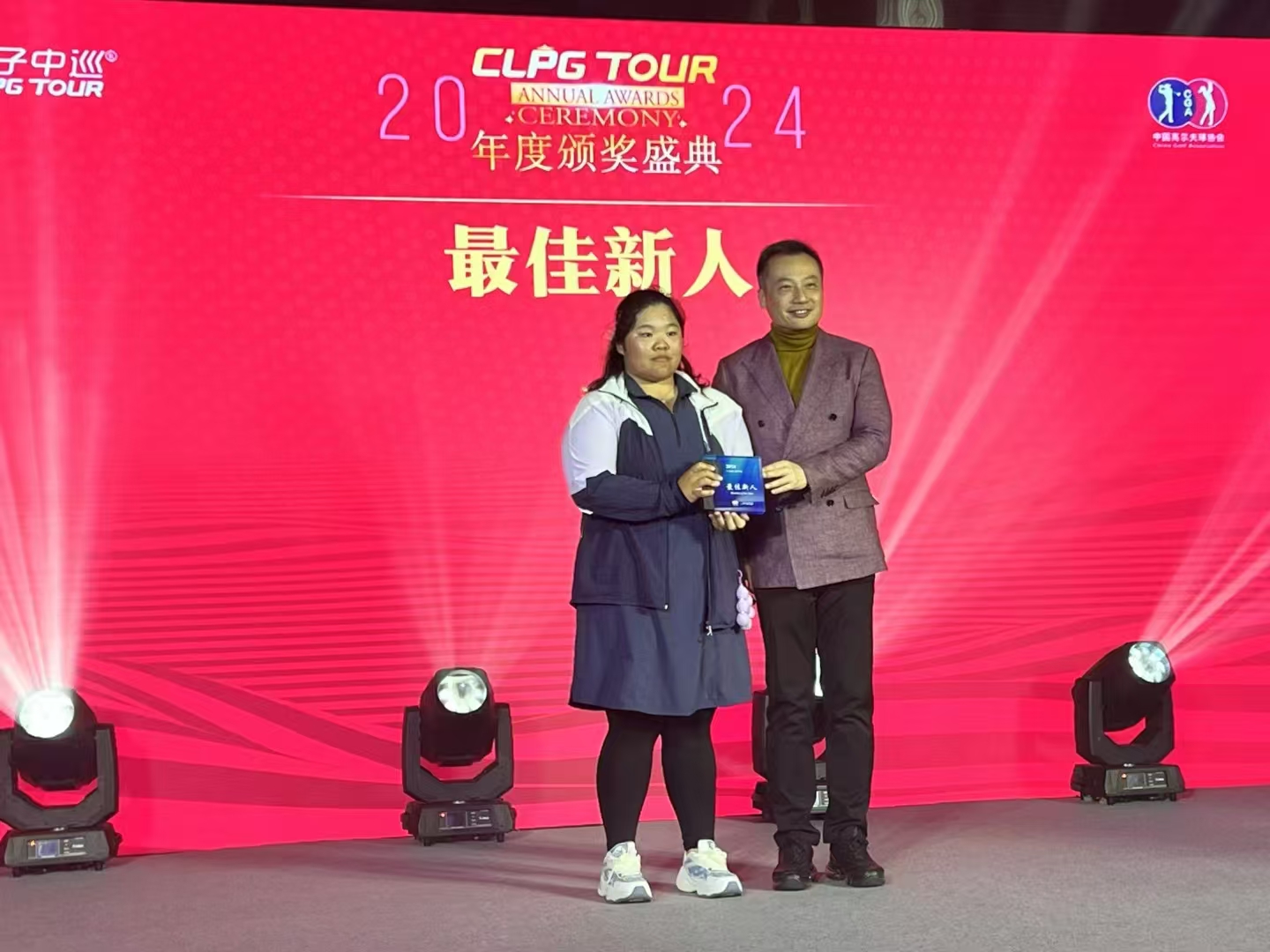 12月14日,2024东方·中国女子公开赛落下帷幕,颁奖仪式于厦门东方高尔夫乡村俱乐部18号洞果岭举行。此项赛事由中国高尔夫球协会主办,中国女子职业高尔夫球巡回赛认证,中女职业高尔夫赛事(北京)有限公司承办。beat365竞技体育学校2022级学生庞润芝摘银,同时获得进步最快球员奖和年度最佳新人奖。对比2024年1月1日的世界积分排名,庞润芝在2024年12月9日世界积分排名上升位次达742名,位列女子高尔夫球世界排名进步最快球员第7位,成为中国女子职业高尔夫球巡回赛2024年度奖金榜排名最高的新人球员。