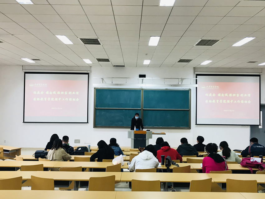 近日,国际教育学院召开全体教师会议,对“迎盛会、铸忠诚、强担当、创业绩”主题学习宣传教育实践活动、“青春献礼二十大 奋斗担当铸忠诚 强国有我新征程”主题宣传教育活动进行动员部署,并对相关工作进行布置。会议由副院长刘海娜主持,体育文化学院党委书记田向国受邀参会。