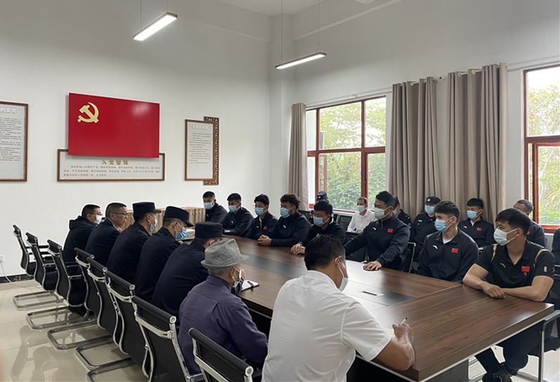 在勐景来党建活动基地,橄榄球队与当地党员代表共同举行升国旗仪式。随后两个支部的党员开展座谈交流。橄榄球队党员代表介绍了球队的发展历程和党员在队伍中发挥的模范作用。当地党员代表介绍了“警企村”党支部联建的背景、联建支部基本情况等。活动中,全体党员重温入党誓词,橄榄球队队员们跟随当地党员来到边境,体验边境巡逻巡查工作。