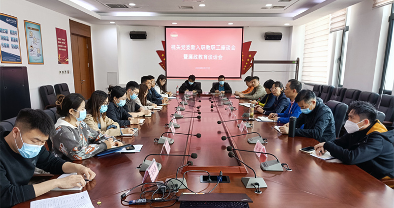 为进一步推进机关党风廉政建设,机关党委于3月22日召开新入职教职工座谈会暨廉政教育谈话会,机关党委书记依惠琴、党委委员、2021年以来机关新入职教职工参加了会议。会议由机关纪委书记刘崇磊主持。