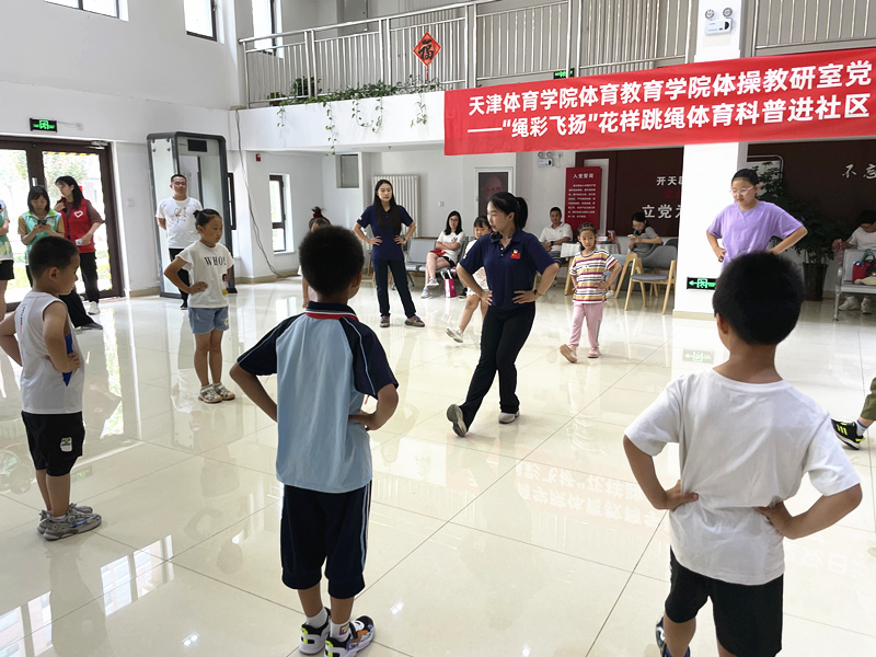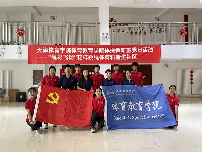 为了贯彻落实党的二十大精神和习近平总书记关于教育、体育的重要论述,强化政治建设,凝心聚力,团结奋斗,为体育强国和健康中国建设贡献力量,6月18日,体育教育学院体操教研室党支部教职工党员带领花样跳绳社团学生,走进西青区精武镇燕南园社区,开展健身科普活动。