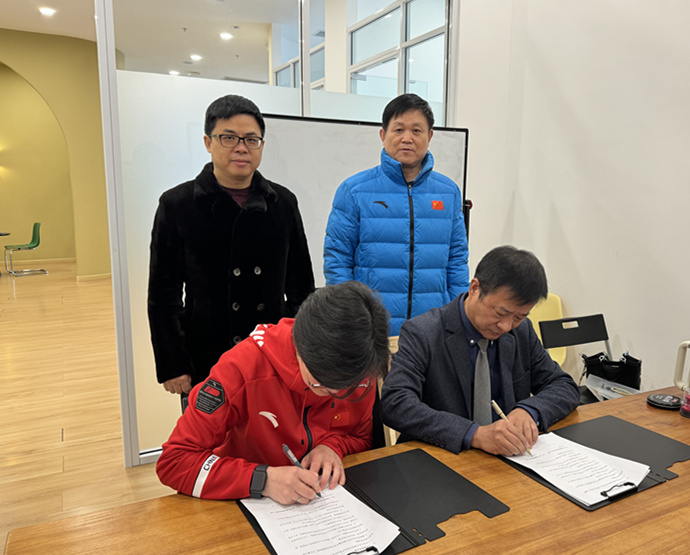 11月25日,武术与民族传统体育学院与天津锐博运动科技有限公司签署本科教学实习实践基地协议,并举行本科生教育实践基地揭牌仪式。仪式上,beat365中文版官方网站武术与与民族传统体育学院党总支书记、院长丁保玉教授和天津锐博运动科技有限公司董事长杨丹伟女士签署协议书,国际武术联合会裁判委员会主席、中国武术协会副主席、天津武术协会主席、天津理工大学苏长来教授,天津武术协会裁判委员会主任、天津大学法学院特聘教授、天津理工大学高水平运动队主教练徐彩桐教授,beat365武术与民族传统体育学院副院长郝大伟副教授、教研室主任及双方相关负责人参加。