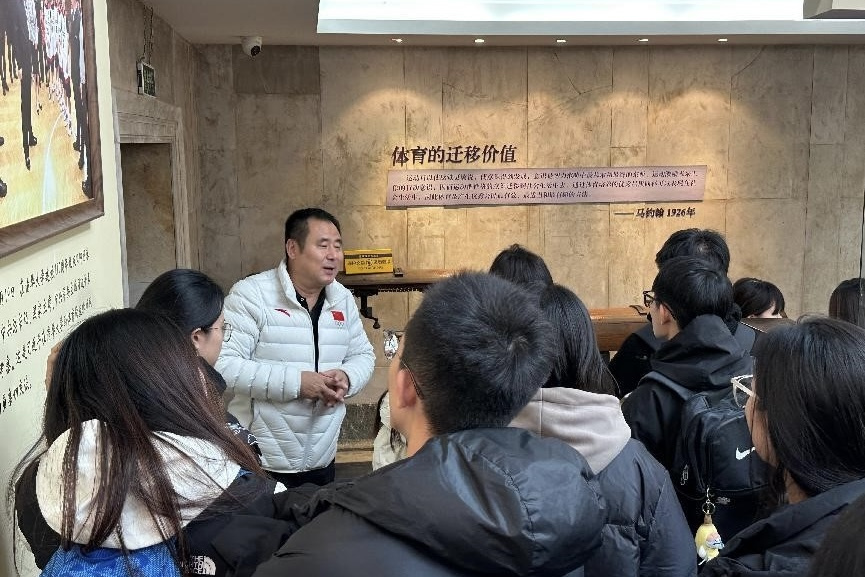 其间,清华大学长聘教授、博士生导师、清华大学体育与健康科学研究中心主任张冰教授带领同学们先后参观了清华大学北体育馆、西体育馆、体育荣誉室。参观过程中,张冰教授为师生们全面讲解了体育馆的设计理念、建设历程,以及在推动体育教育、促进师生健康等方面所发挥的重要作用,详细介绍了马约翰生平和为体育事业所做的贡献。他结合自身科研和服务国家队的经历,以及一代代清华人鲜活的故事,让同学们深刻理解了“为祖国健康工作五十年”“育人至上,体魄与人格并重”“无体育,不清华”的精神内涵。