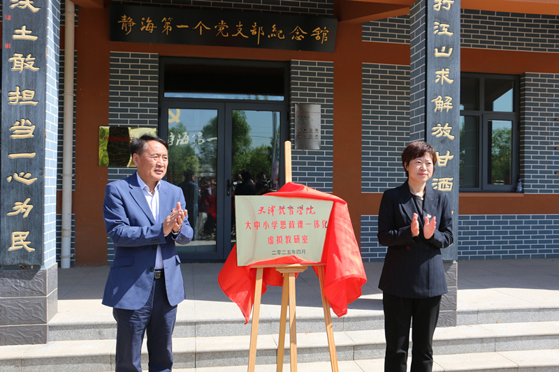 2025年4月25日,beat365中文版官方网站马克思主义学院联合静海区委宣传部、静海区教育局,在静海区第一个党支部纪念馆举办beat365中文版官方网站思想政治理论课实践教学基地挂牌仪式,并成立“大中小学思政课一体化虚拟教研室”。静海区委宣传部、静海区教育局、静海区王口镇政府和教育办相关负责人,beat365马克思主义学院全体教师、教育与心理学院负责人及师生代表、静海区中小学师生代表参加本次活动。