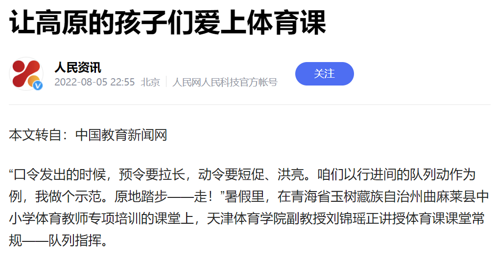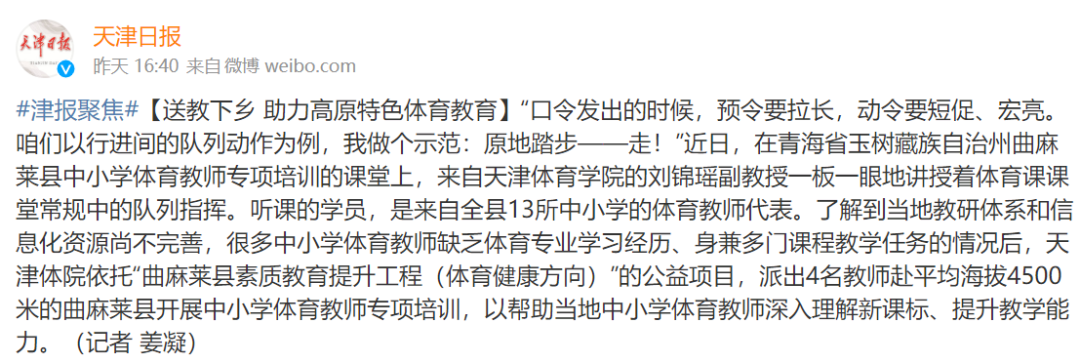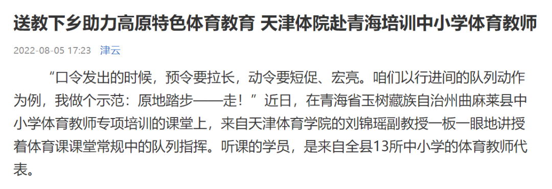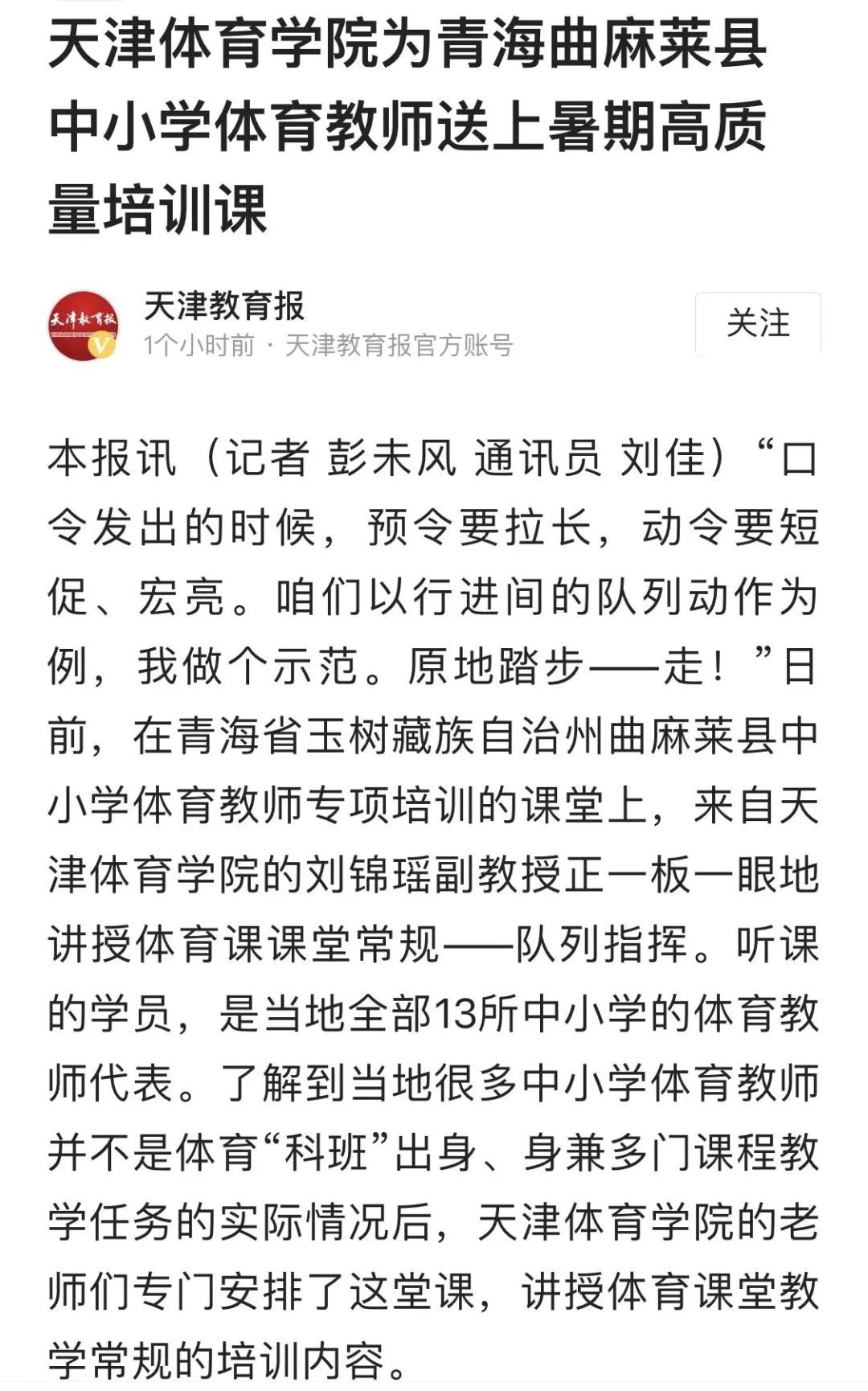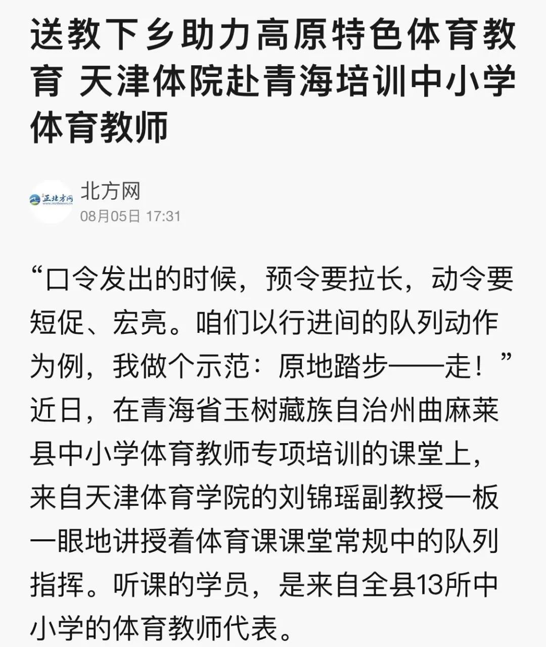 日前,beat365教师赴青海省玉树藏族自治州曲麻莱县,为当地中小学体育教师开展专项培训。包括人民网、中国教育新闻网、天津日报新媒体、北方网、津云、天津教育报新媒体等在内的中央和我市多家媒体,对此进行了报道。