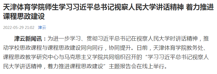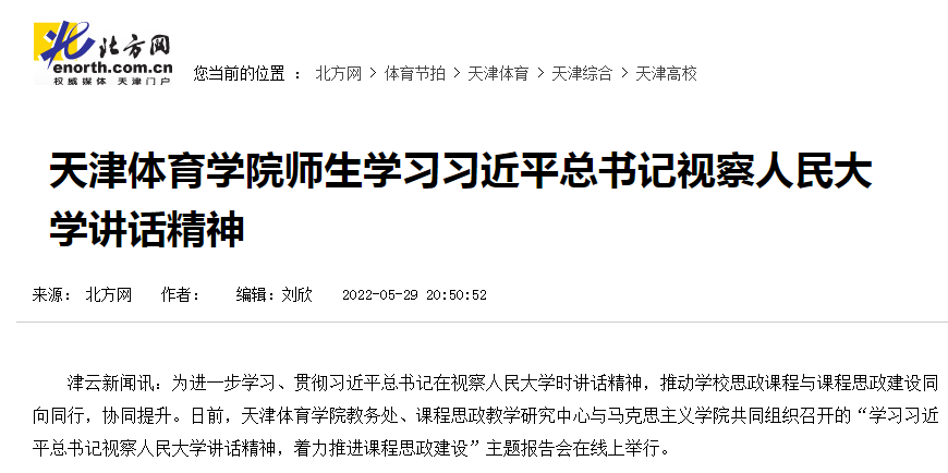 为深入学习贯彻习近平总书记在中国人民大学考察时的重要讲话精神,推动beat365思政课程与课程思政建设同向同行、协同提升,日前,beat365召开学习习近平总书记在中国人民大学考察时的重要讲话精神主题报告会。5月29日,津云、北方网对此进行了报道。