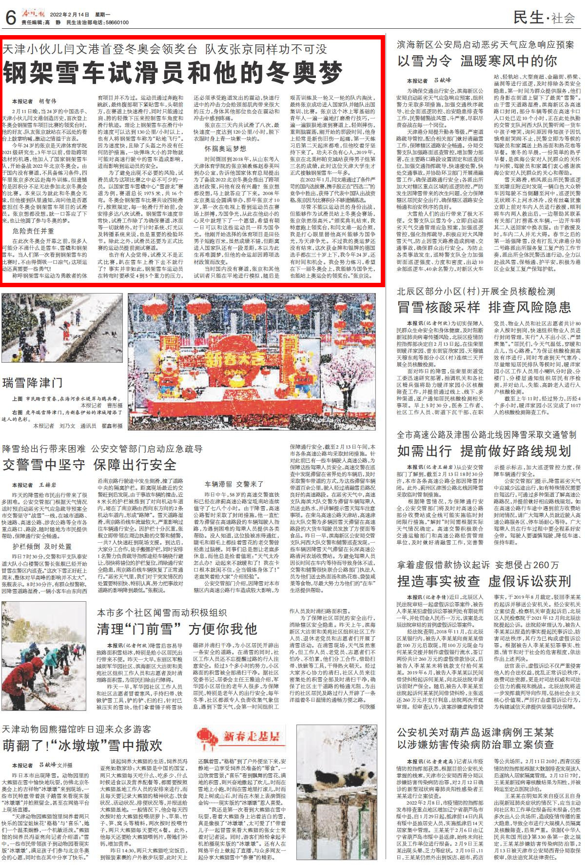 2022年2月14日,《今晚报》报道beat365学子张京追逐冬奥梦想,助力中国钢架雪车队创造历史。现全文转载。
